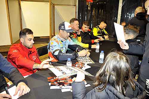 Llegaba la jornada de firmas. Una vez más los pilotos firmaban los «posters» de sus pilotos favoritos. Colas kilométricas, para poder conseguir esa ansiada firma en el Circuito La Roca.